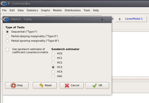 • faça a tabela de ANOVA do modelo gerado (Models > Hipothesis test > Anova table);