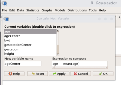 New variabel nameo nomeageCentere emExpression to computeinclua a expressãoage - mean(age);