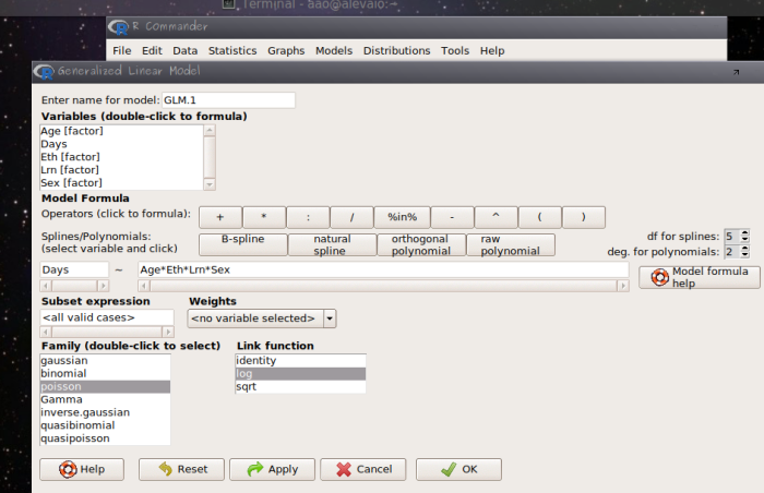 • abra o menu Statistics > Fit model > Generalized Linear Model