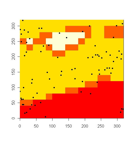 image(seq(0,320,by=20), seq(0,320,by=20),t(matsolo), xlab=“”, ylab=“”)