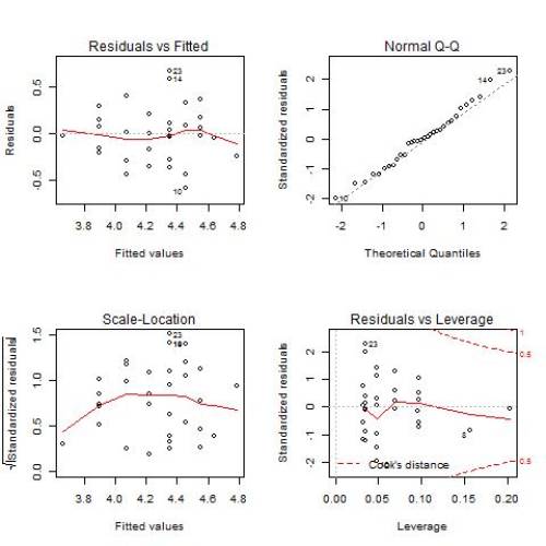 Residual standard error: 0.3026 on 30 degrees of freedom Multiple R-squared: 0.4385, Adjusted R-squared: 0.4198 F-statistic: 23.43 on 1 and 30 DF, p-value: 3.652e-05