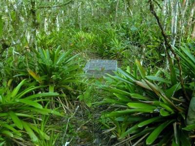 Um pilotinho (21/10/09): instalei uma 'gaiola' na restinga baixa e coloquei 15 sementes de Abarema para testar. Antes de colocar a 'gaiola' retirei as plantas que estavam no local. Vou ter que fazer isso em todas que for instalar para deixar o solo exposto para colocar as sementes. Tirei umas fotos para você ver como ficou. A 1a. foto é um detalhe da lateral da gaiola, a 2a. é uma 'vista de cima' da gaiola e a última e uma vista geral dela disposta na mata.