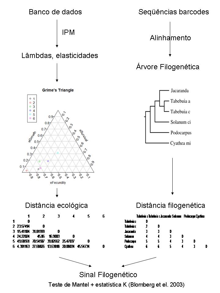 - Os caracteres demográficos são resultado direto das interações entre as espécies e de suas relações filogenéticas. O que esperar do comportamento desses caracteres quando se olha para a filogenia das espécies?