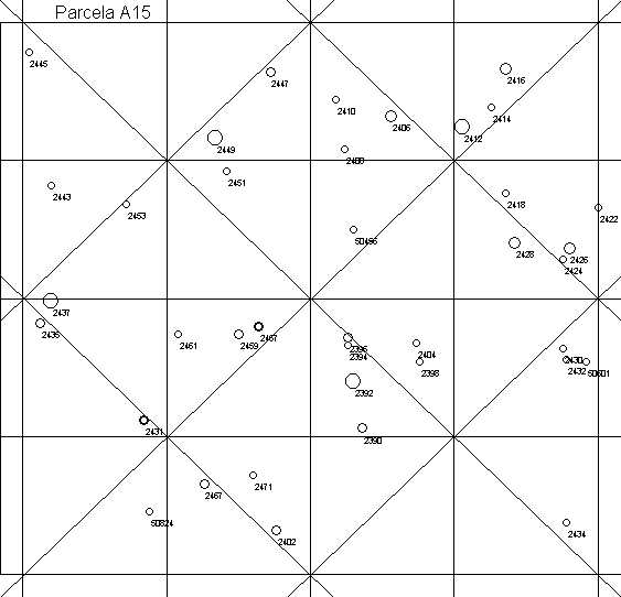- desenhe a parcela com os circulos proporcionais ao tamalho do dbh