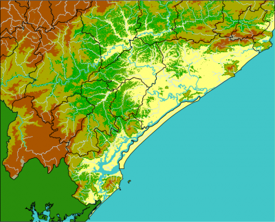 <box blue 300px center|Área ocupada por fisionomias de restinga em Cananéia>